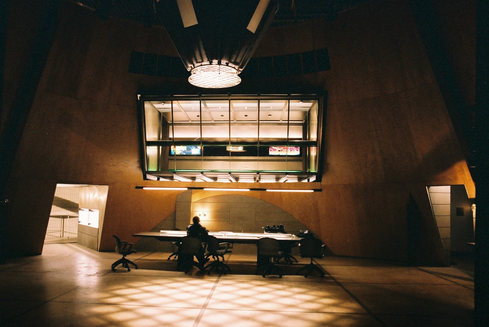 Office of the Section One's Operations. It is a wide glass enclosure that juts out over the main floor of Section above the briefing table. It has no furnishings and is equipped with a large bank of flat screen monitors on the wall opposite the window for video playback, maps, and intel display. When privacy is required, it can be darkened via remote control.